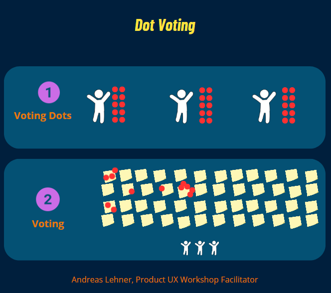 In Kombination mit der Aktivität 1: Post Up ergibt Dot Voting die mächtige, ebenso fundamentale Workshop-Übung: Note & Vote (erfahre mehr darüber HIER).