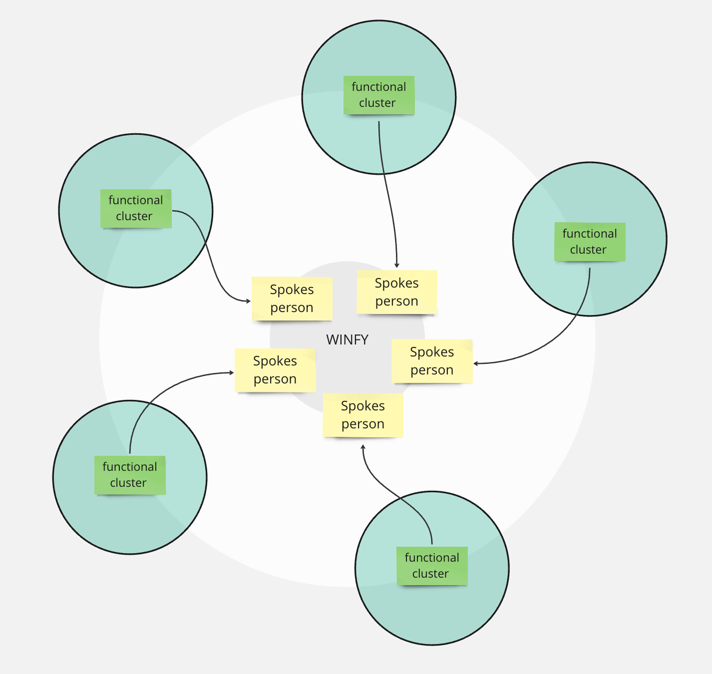 Form 3 to 7 functional clusters, with a group of 3 to 7 spokespersons representing each cluster.