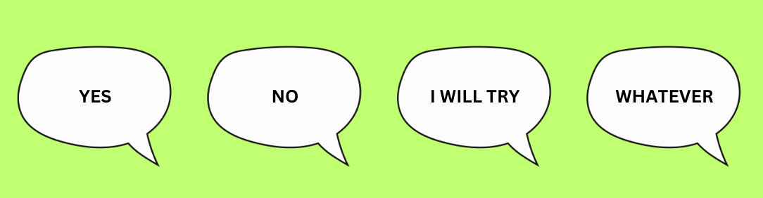 Encourage them to respond unambiguously to requests from others. For this to achieve the group should commit to answering with these 4 answers only: