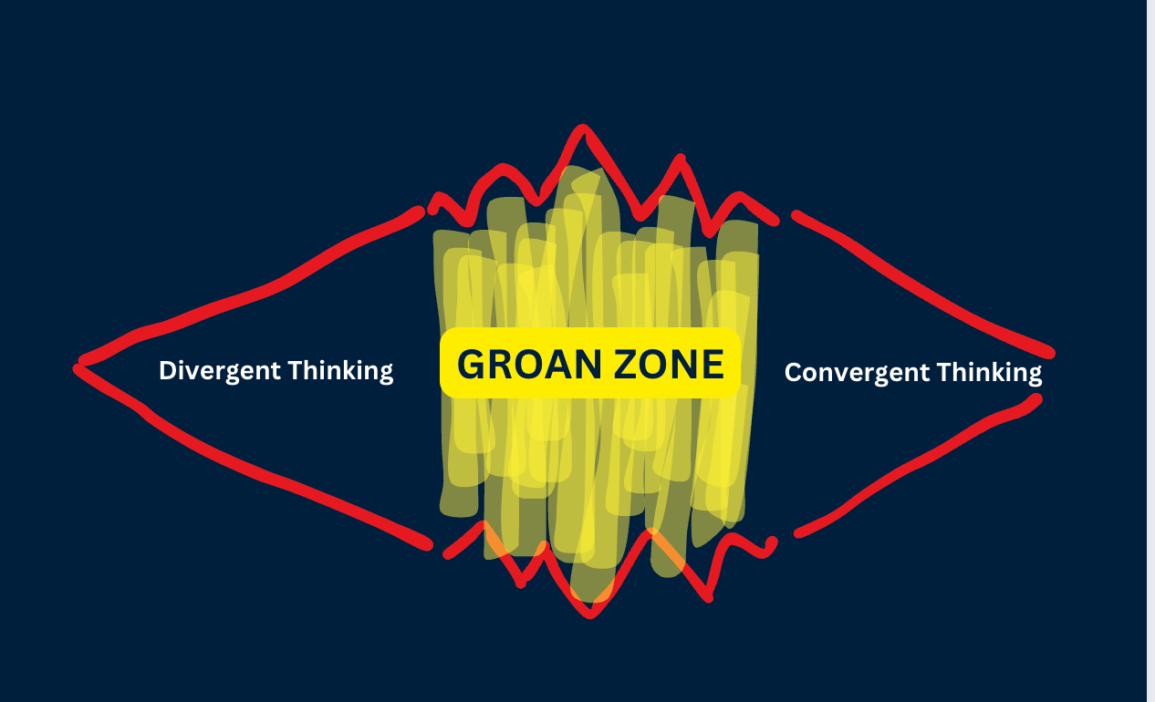 Here’s why understanding and navigating the Groan Zone is a skill worth mastering and how it connects to broader practices like Design Thinking.